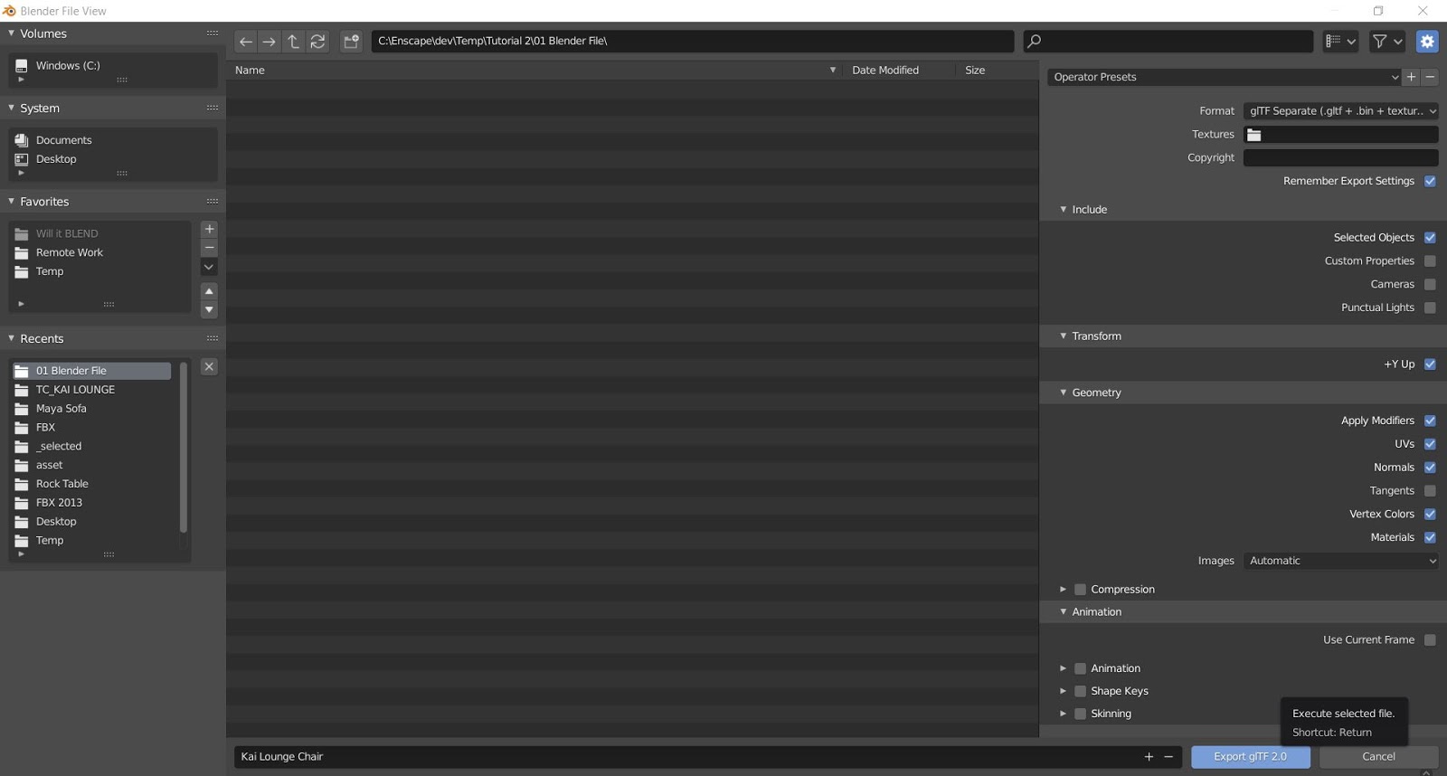 In this tutorial, we will be using Blender to convert the ‘Kai Lounge Chair’ model into an Enscape asset.