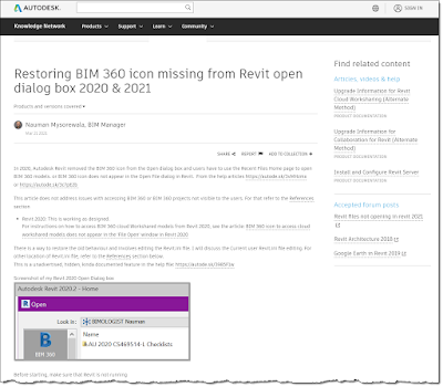 Do you miss having the BIM 360 icon in the open dialog in Revit? In today's post, I will share an Autodesk Knowledge Network (AKN) article on how to restore it. This article was written by my friend, Nauman Mysorewala.