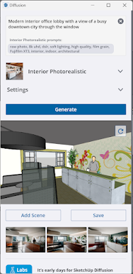 Trimble has developed an AI image generator extension for SketchUp, called SketchUp Diffusion, which is now live. I will share my very first use of this tool in today's post, which resulted in a decent set of images based on my model and prompt.